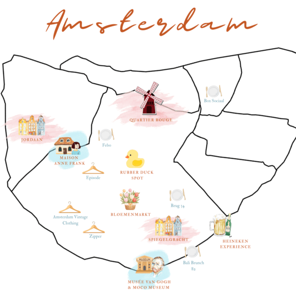 On commence en douceur dans mon quartier coup de cœur : Jordann, Un concentré de charme ! Entre ses ruelles pavées, ses canaux bordés de fleurs et sa multitude de petits cafés tendances, vous pouvez émerger tout en douceur.