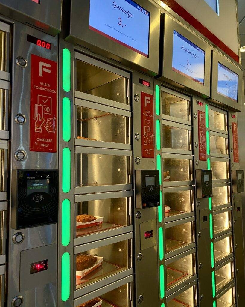 Après cette matinée culturelle, on déjeune sur le pouce ! Et quoi de mieux que de déjeuner de façon insolite avec Febo ? Ici, vous choisissez votre burger directement dans un distributeur automatique. Vous payez, la petite porte s’ouvre… et hop, c’est prêt. Ce n’est pas forcément de la grande gastronomie, mais c’est rapide, inédit, et franchement très néerlandais !